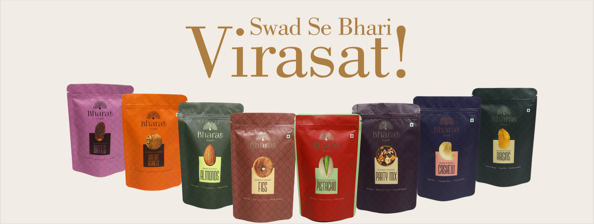 We are Bharat foods, your premier destination for indulgent Indian sweets, dry fruits, snacks & more. We offer luxury & opulence in the form of premium quality sweets & snacks with a modern twist. Our story began with a passion for creating delectable delights that bring joy to every occasion. With love, care, and the finest ingredients.